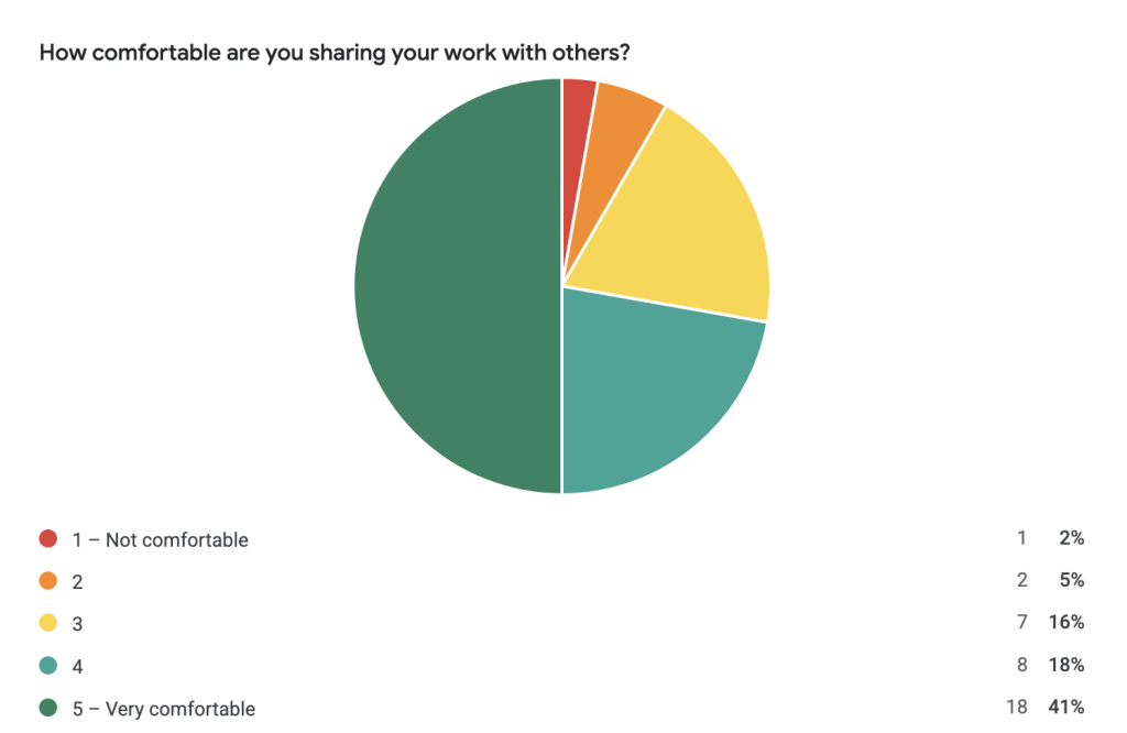 Sharing comfort, feedback frequency, and format preference — mirroring the website form so data sets stay comparable.