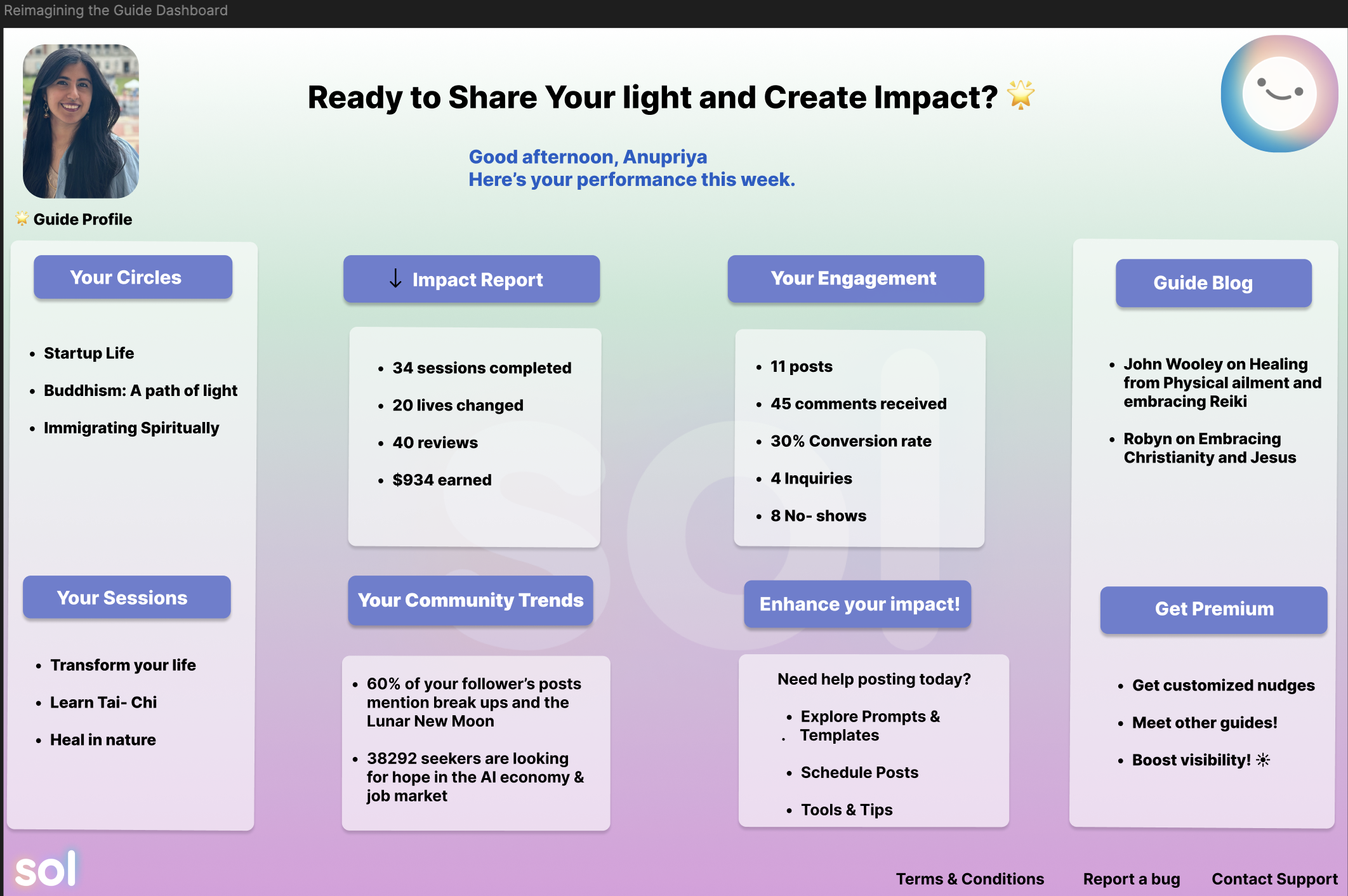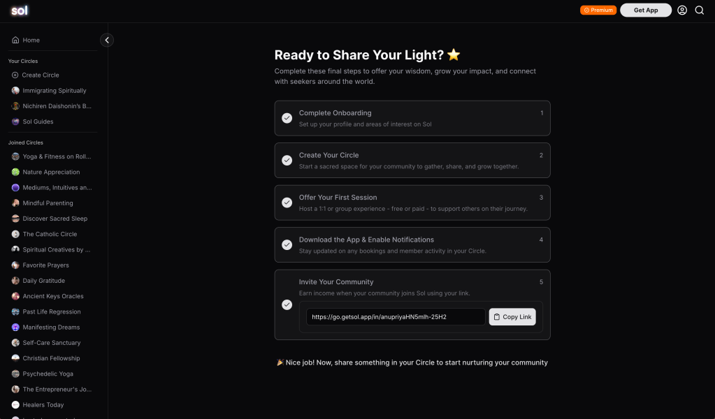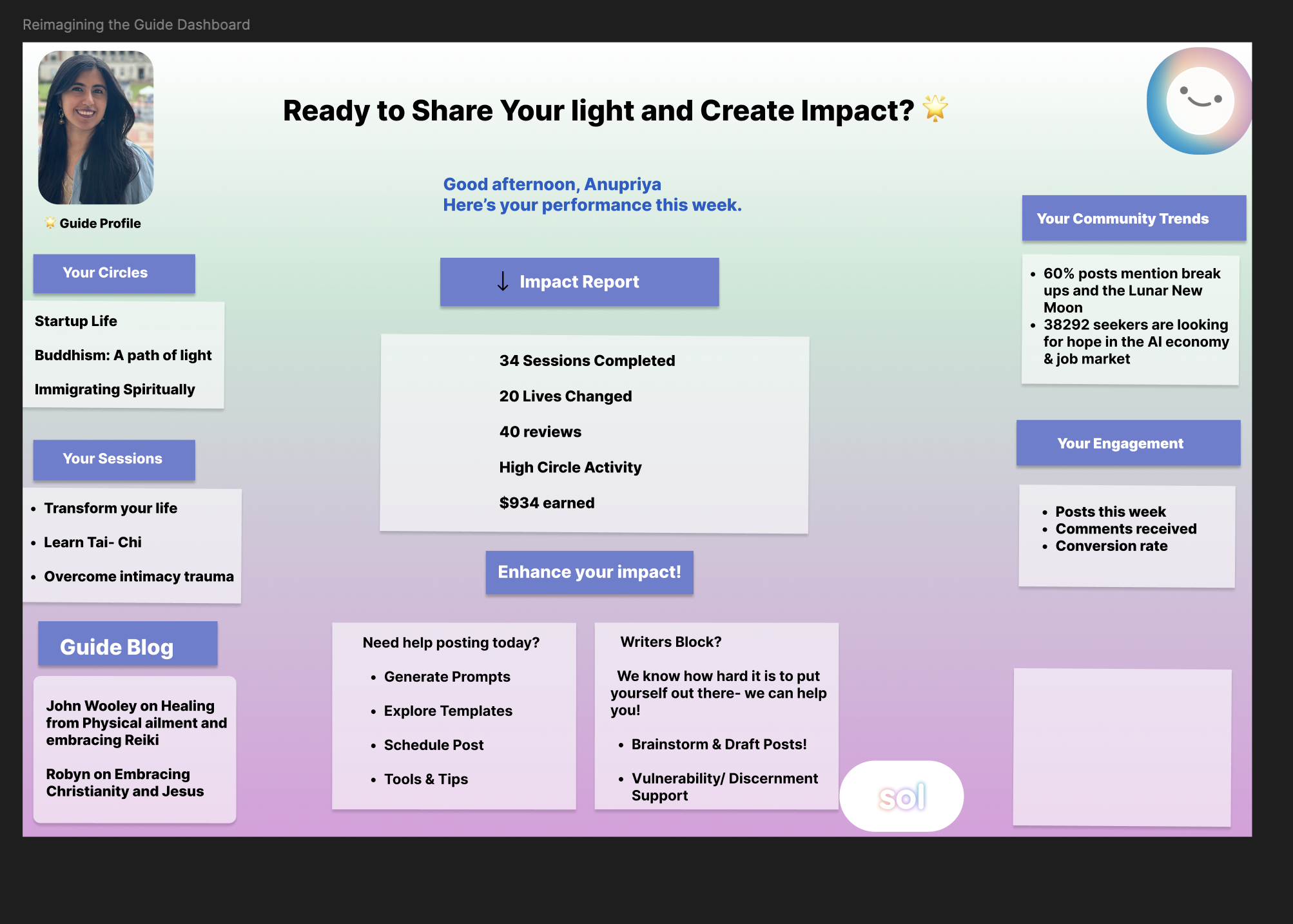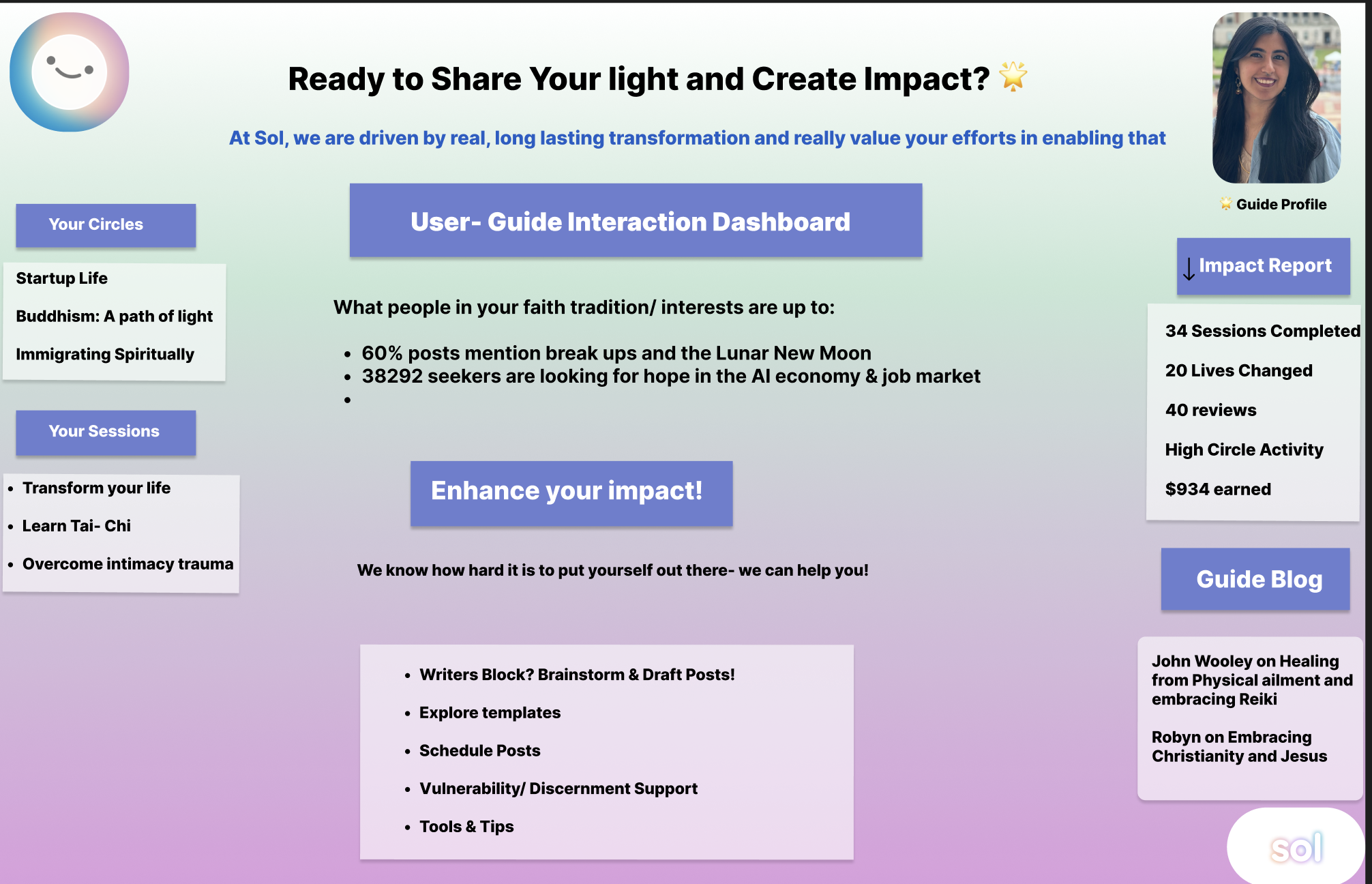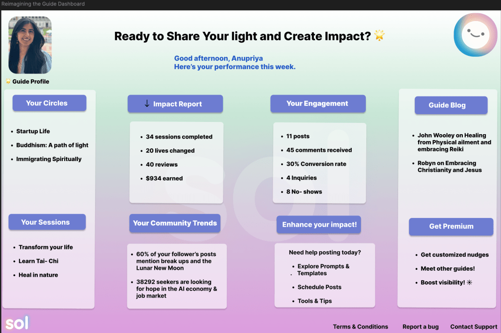 I led the execution of bringing spiritual guides from Meetups, FB groups, etc., onto Sol to build their circles and invite their communities to join.