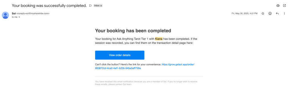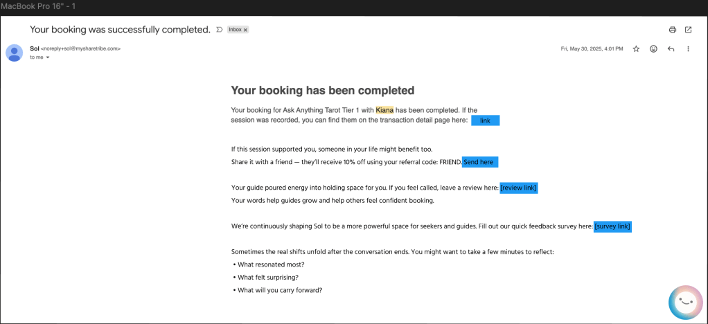 Suggested post booking completion mail