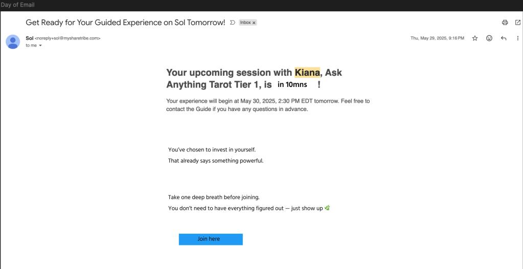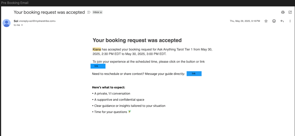 - I drafted a pre- booking mail adding more emotional safe space reinforcement nudges when the session is booked