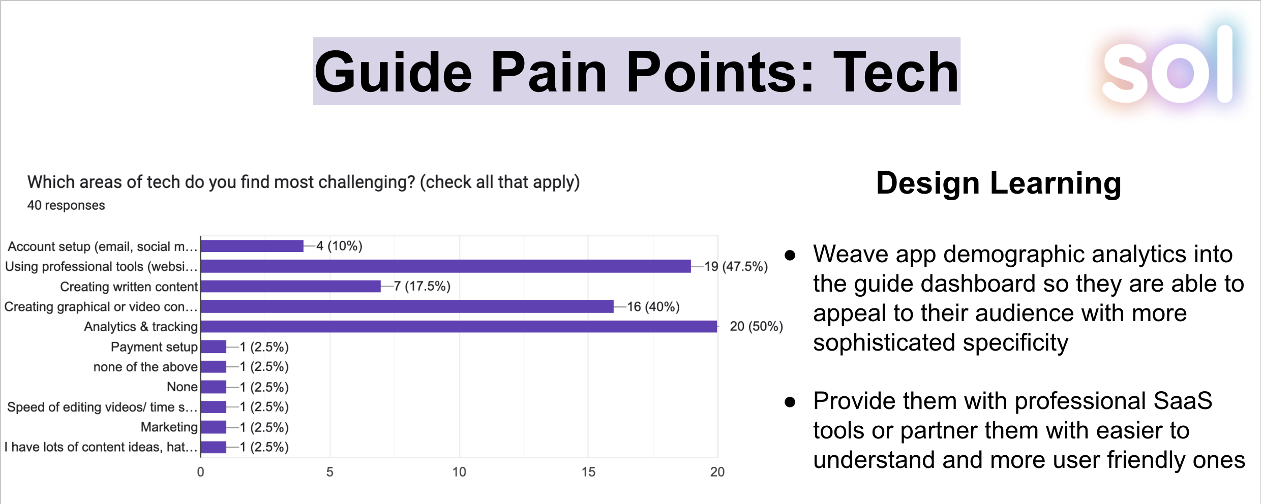 - Survey of spiritual guide pain points (n= 40)