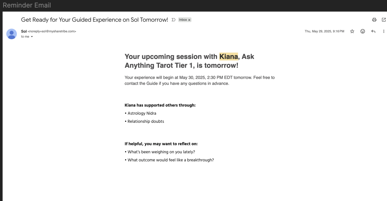 - Reminder friction (many folks get confused about where to even message the guide)